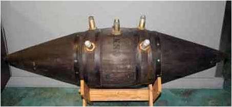 A crude form of mine warfare first appeared early in the war in Stafford. On July 7, 1861, Captain Budd of the USS Resolute discovered this “infernal machine designed by the Confederates ” lying in wait for Pawnee and the Potomac Flotilla. The contraption combined watertight 80-gallon oil casks (as buoy) and 20 fathoms of 3.5 inch rope with cork buoys along every two feet of rope. These held explosive canisters six feet under water. Fuses in gutta-percha tubes completed the mine array.