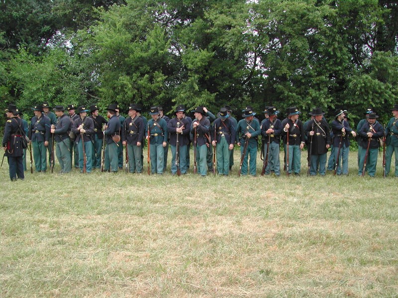 The 7th Wisconsin Infantry Regiment is shown here in Stafford overlooking the town of Fredericksburg. Notice their Hardee hats. They spent most of this First Federal Occupation as members of the “Iron Brigade.”
