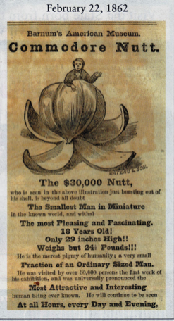 Commodore Nutt, pictured on the left, visited Stafford and helped review the troops with Lincoln. Nutt was no stranger to Lincoln. Nutt came to fame when P.T. Barnum hired him in 1862 to be a performer at his New York and Florida museum. Nutt was best man for Tom Thumb’s wedding which was held in New York. The wedding was splashed across newspapers throughout America. Three days after their marriage, Tom Thumb and his wife, along with Nutt, visited the president. Evidently, Nutt had a beautiful singing voice and sang for the president several times after that. The last two days of Lincoln’s week-visit to Stafford were captivating for the soldiers who saw the 6-foot 4-inch president and twenty-nine-inch Nutt. Nutt may have been one of America’s first celebrities to visit troops in the field. (The other gentleman in the picture, who was probably included for scale, may be Sylvester Blecker who was P.T. Barnum’s agent.)