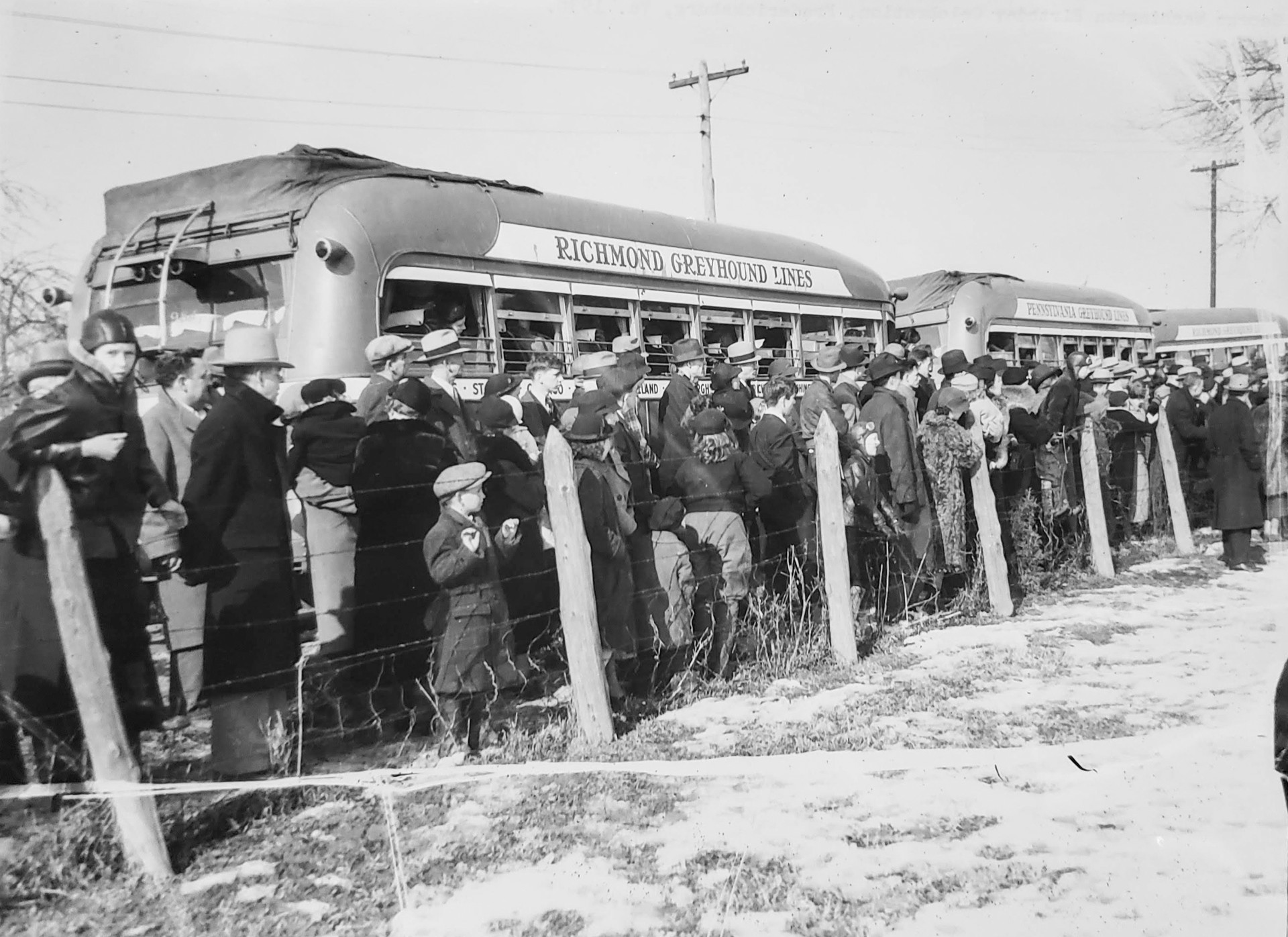 Late on Friday afternoon, February 21, dignitaries from Richmond began to pour into town in Greyhound buses and private cars, bound for the State Teachers College, where dinner, entertainment, and accommodations awaited them. The morning of the 22nd, a wreath-laying at the Mary Washington Monument and a tour of the city’s historical attractions led off the day’s events. After a luncheon at the Stratford Hotel, the entourage headed to Ferry Farm for the boulevard dedication ceremony and Walter Johnson’s throw, set for 2:30 – 2:40 to meet the Columbia Broadcasting System’s radio schedule.