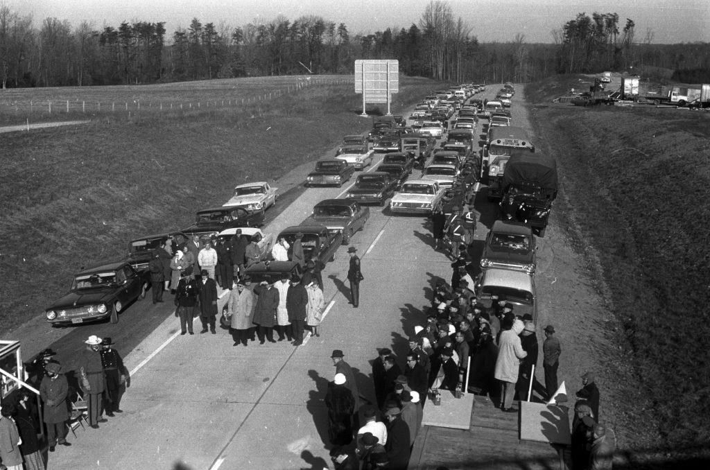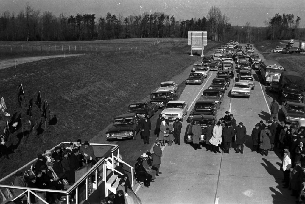 Following World War II, there was greater interest in building a national system of interstate highways. In 1956, Congress passed the Federal Aid Highway Act. This created the National System of Interstate and Defense Highways and was funded mostly by federal dollars. Virginia received 1,070 miles of interstate highway in this new system. The first sections of Interstate 95 (I95) in Virginia to open were between Woodbridge and Washington D.C. and from Richmond to Petersburg. I95 opened in between Massaponax and Dumfries in December 1964.[ix] The interchange at Aquia and Garrisonville changed this area and led to the destruction of several properties in the area, including the Aquia Tavern.