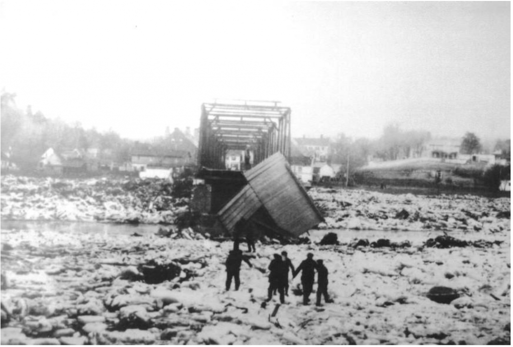 After five spans of the Falmouth Bridge were destroyed by ice, Falmouth residents W.E. Brooks and Nelson Berry, immediately gathered a group of Stafford citizens to salvage broken parts of the destroyed spans. A footbridge was constructed from the debris to allow residents to cross the Rappahannock River. Many citizens of Falmouth and south Stafford worked at the Washington Woolen Mill in Fredericksburg and were needed by their employers to return to work.